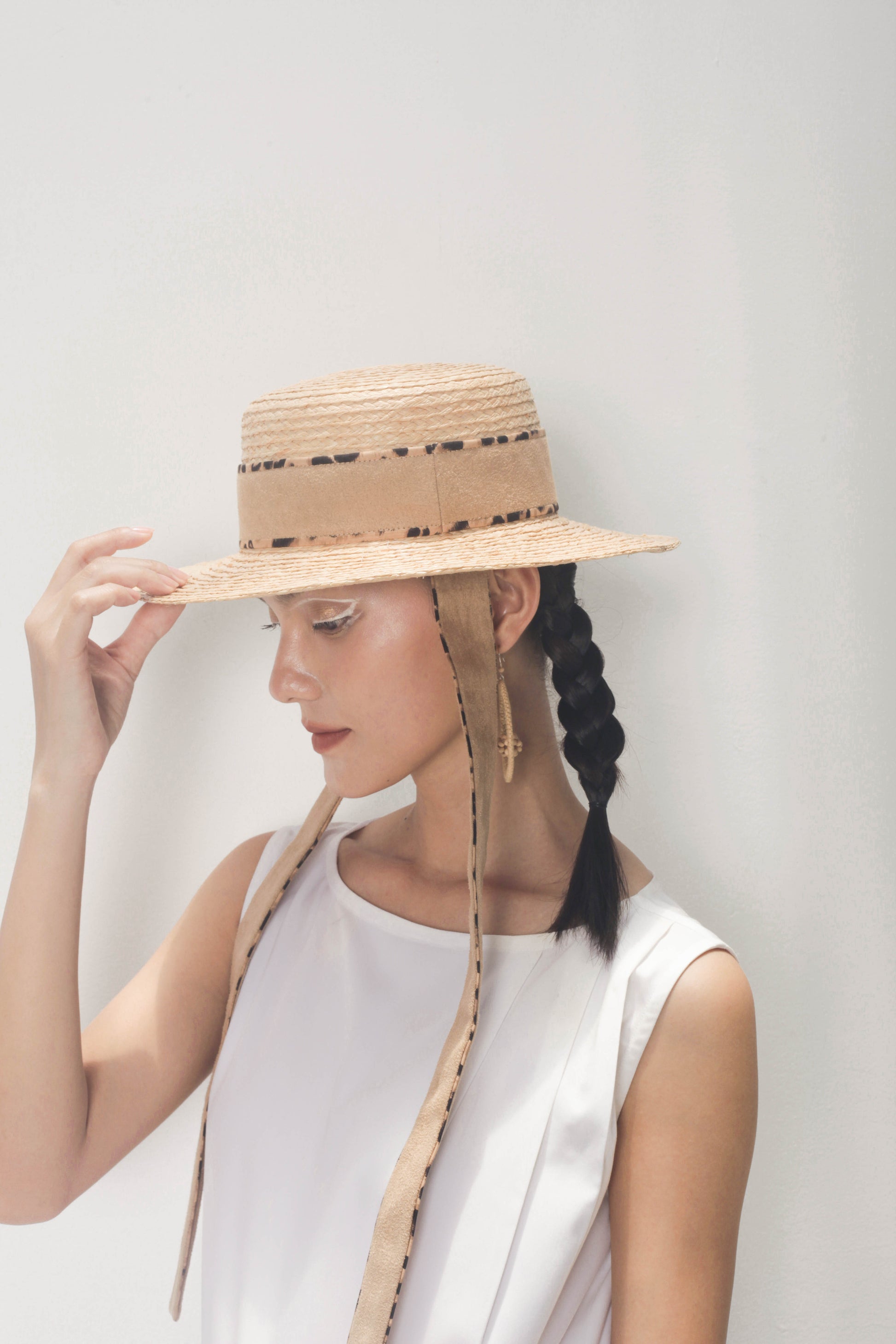Adoptez le chic nautique avec le chapeau canotier en raphia Hamilton. La silhouette classique garantit des journées insouciantes passées à profiter de la lueur estivale, avec la touche bohème étant la sangle confectionnée en daim. Le chapeau canotier Hamilton est le complément parfait à votre garde-robe d'été, un mariage d'héritage nautique et de savoir-faire moderne.