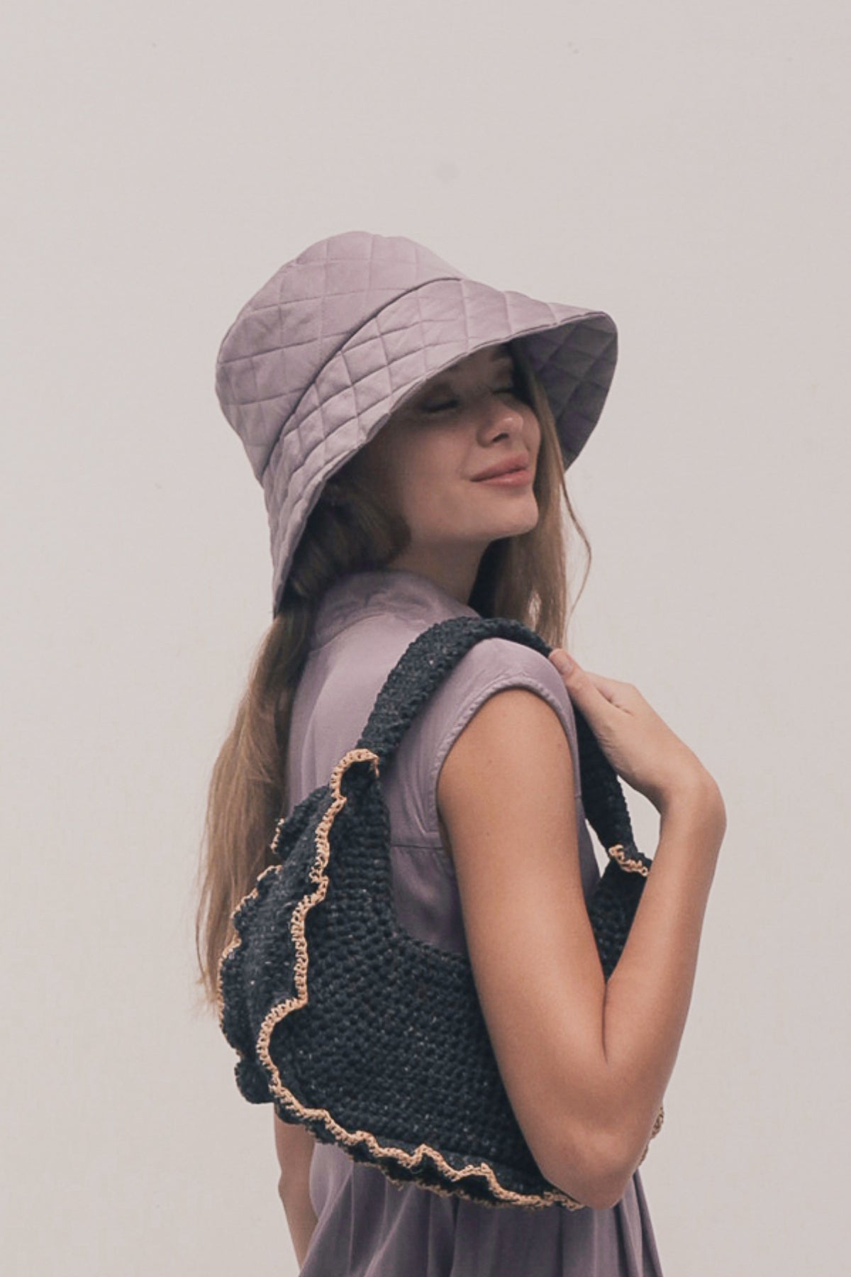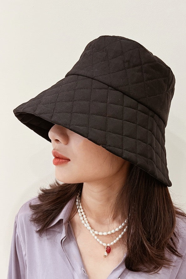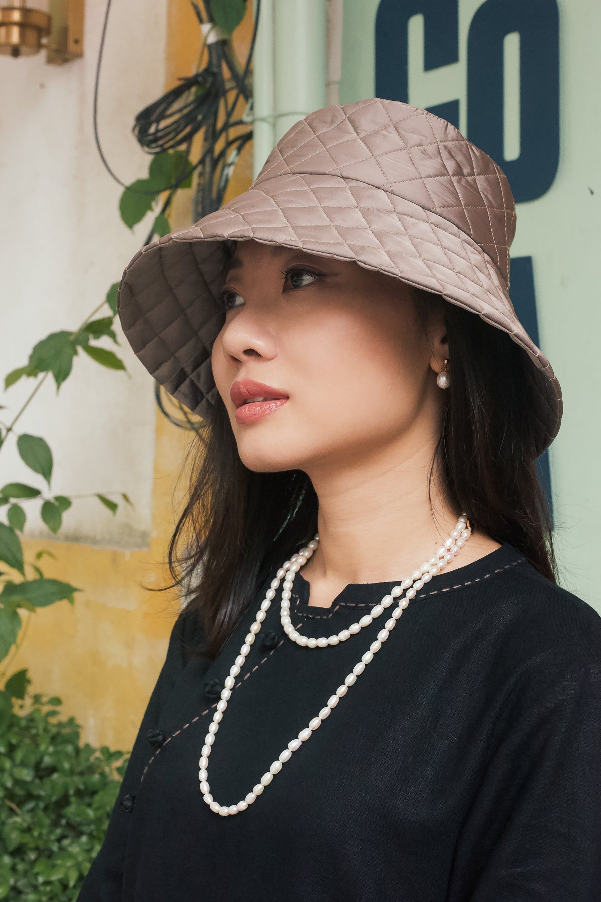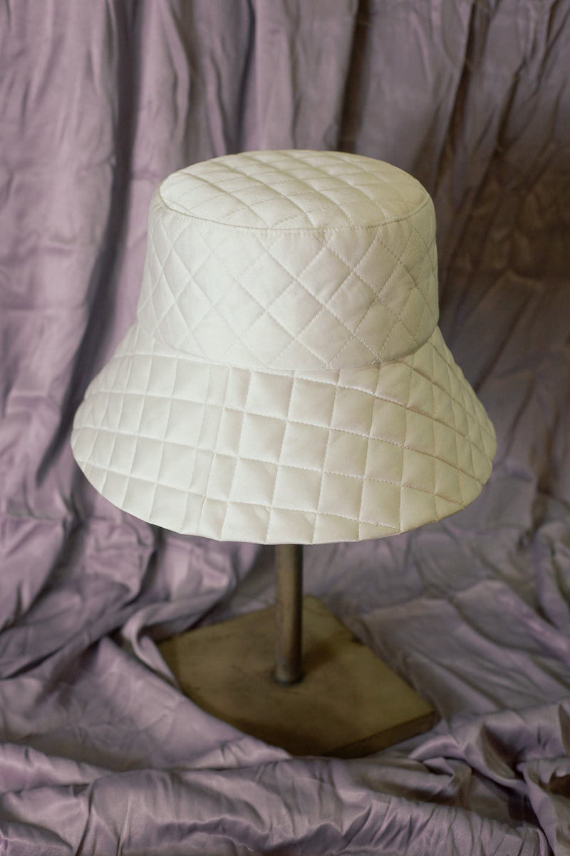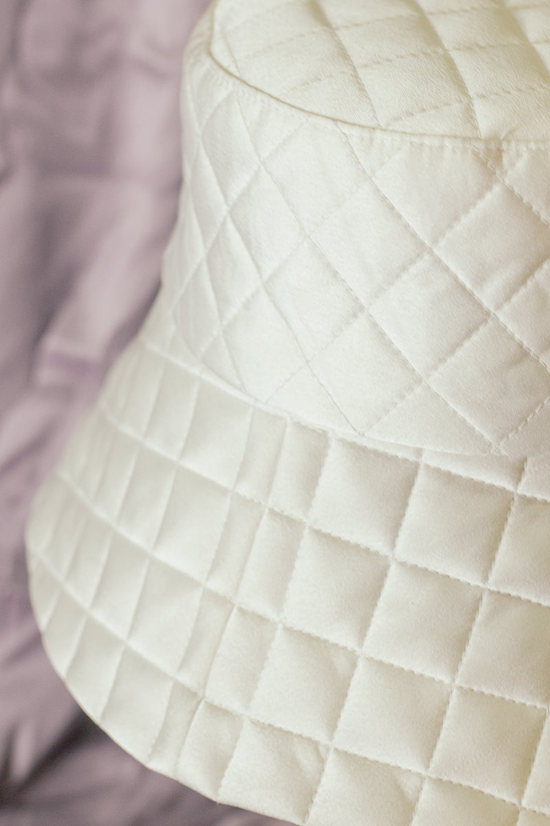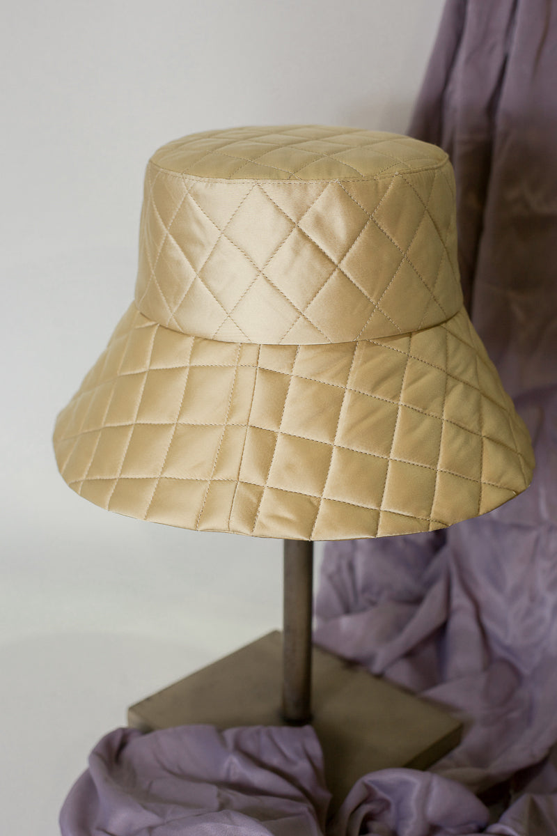 Le chapeau Losange est une déclaration douce et puissante à la fois. La soie chatoyante est sublimée par un motif matelassé réalisé à la main par les artisans de Leinné. Sa large bordure tombante encadre le visage d’une touche de mystère. Parce que rien ne suggère mieux la sensualité féminine qu’un éclat subtil, caché sous la surface.