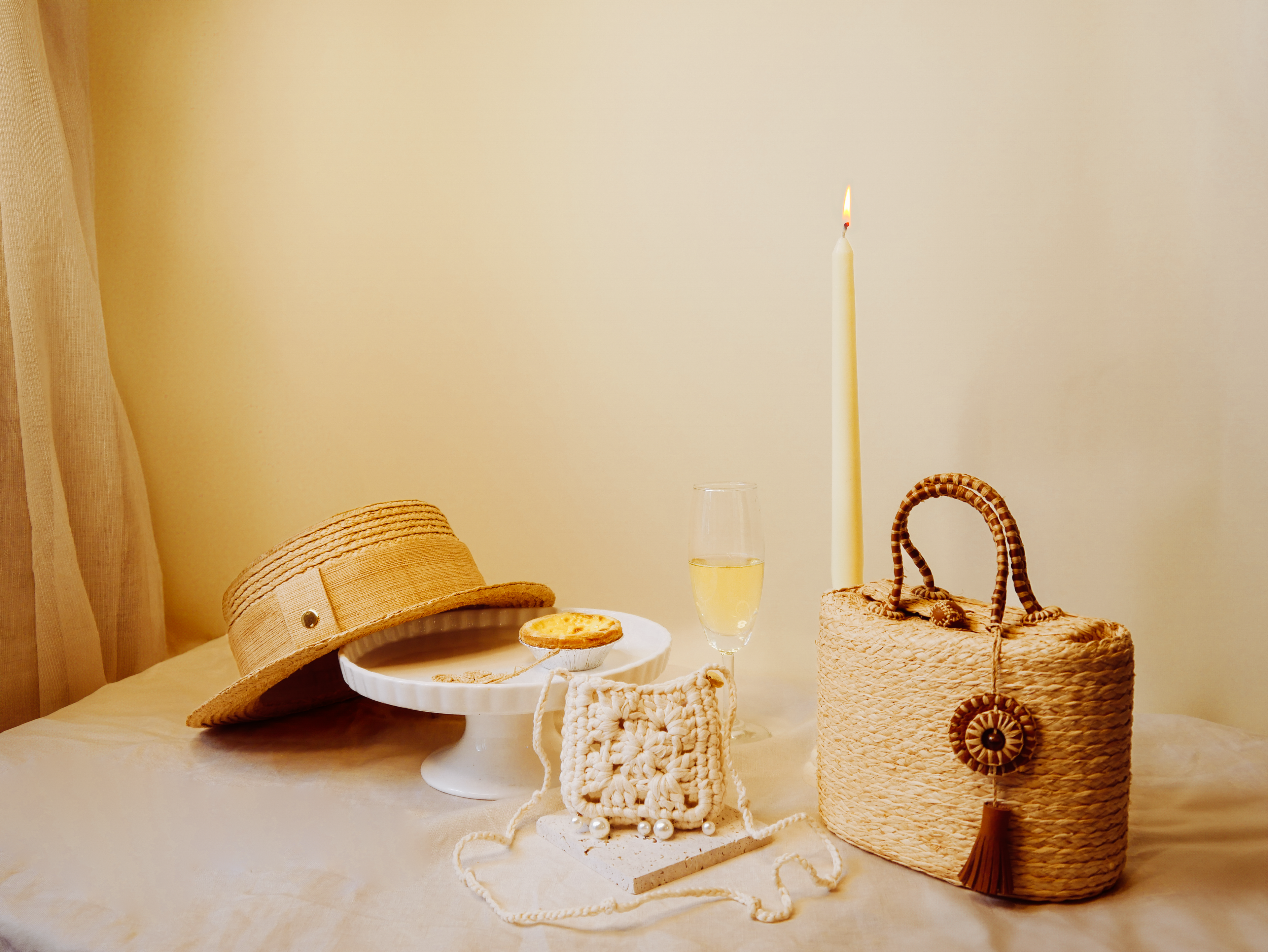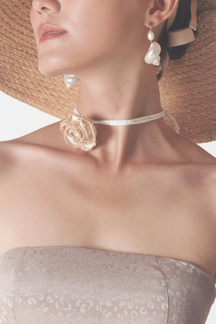 Not a dining table, but a table of creation: where a raffia strand becomes architecture, where pearls glow like late-summer stone fruits, and where craft mingles with appetite.