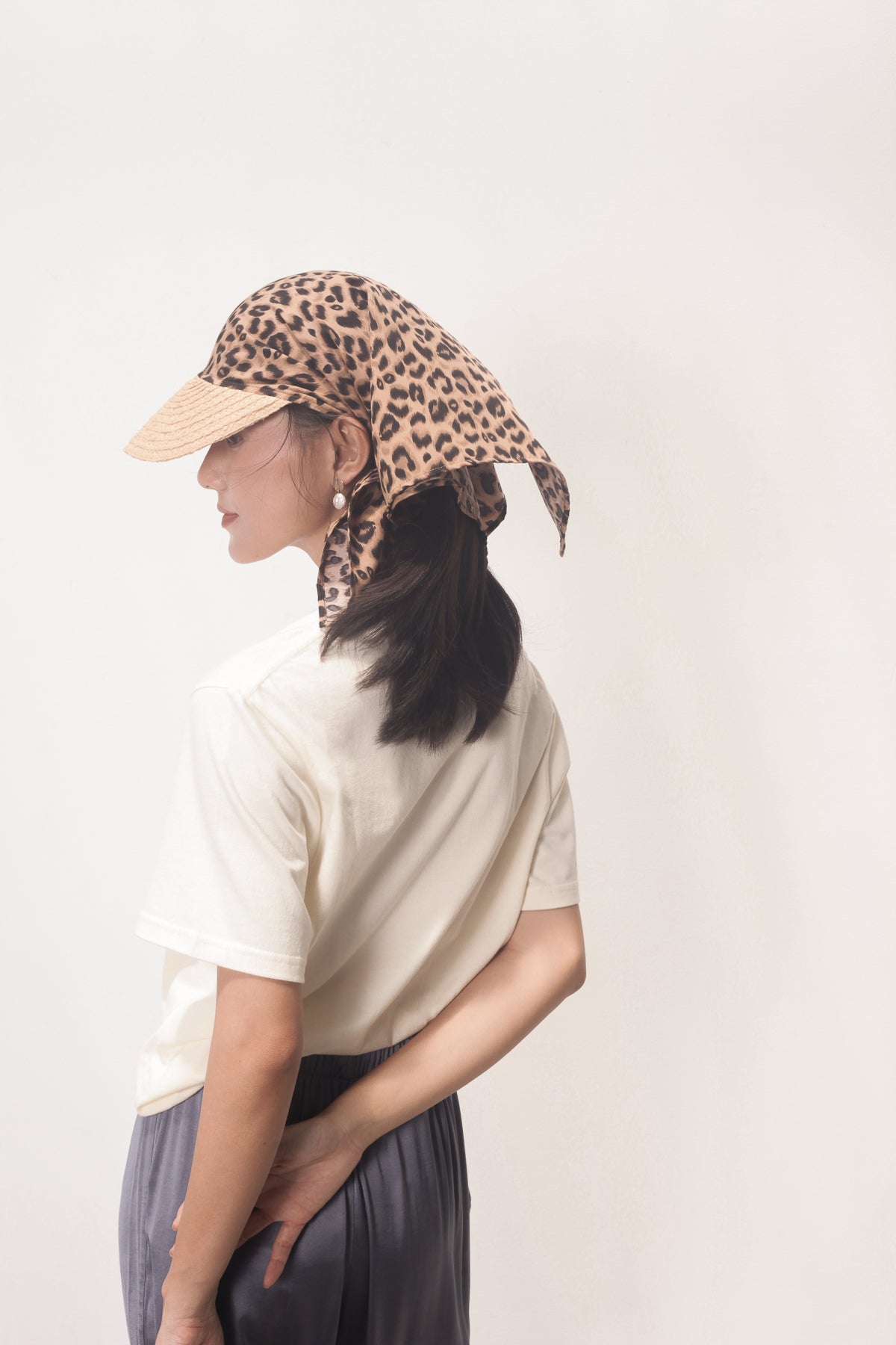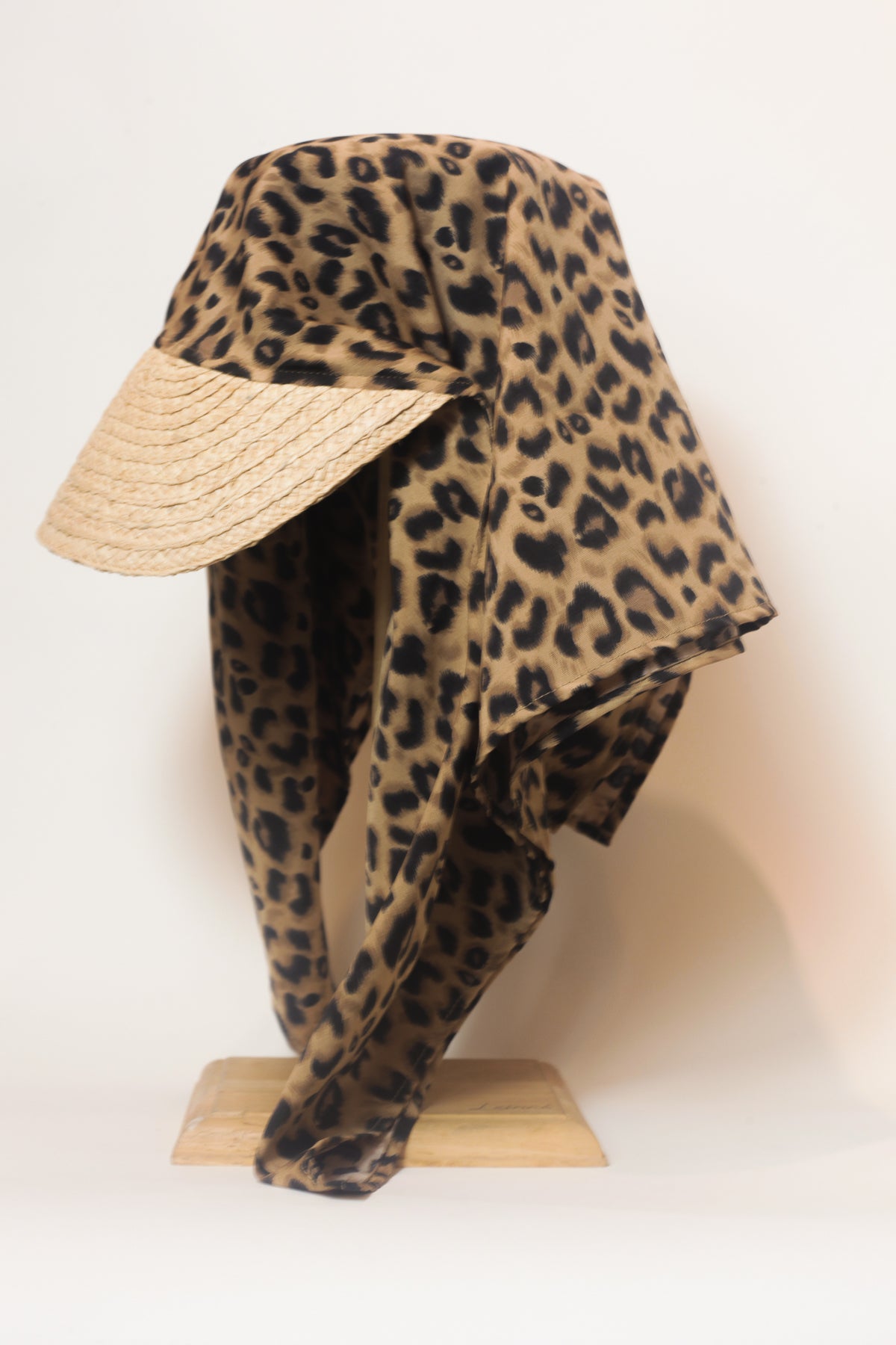 Nón lưỡi trai khăn choàng Shadan từ raffia và lụa da báo