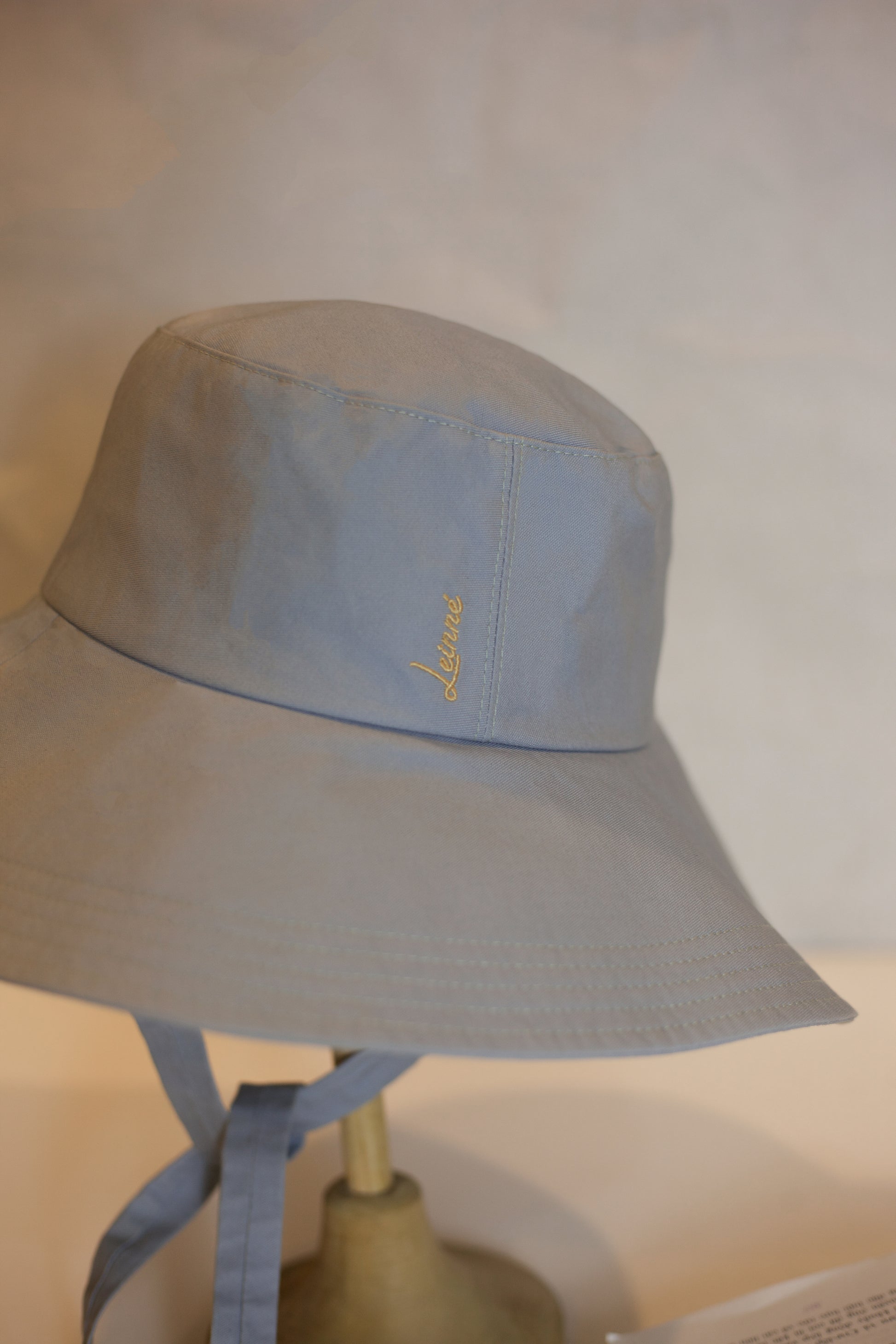 Nón vải vành cụp Lu mang tinh thần và vẻ đẹp của sự tinh giản. Nón được làm trong xưởng thủ công 20 tuổi của Leinné, từ vải cotton hữu cơ mềm mại với những đường may vòng tròn quanh vành cụp vừa và dây cotton bản to bên dưới. Bên trong nón lót được lót đai mềm để tạo sự thoải mái, mang tinh thần của Leinné.