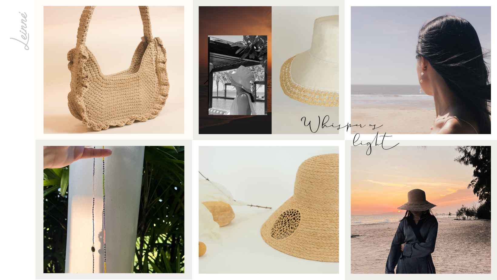 Với những mảnh vải canvas và raffia thủ công của Leinné, được tạo hình bởi đôi bàn tay tài hoa và truyền thống lâu đời, từng chi tiết đều trở thành biểu hiện của sự chăm chút thầm lặng.